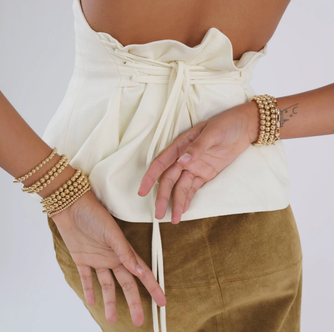 This sterling silver 6mm ball bracelet has elastic stretch and is water resistant.  It is great for wearing on its own or we suggest layering with other Alexa Leigh bracelets to create your own, personalized look.  The Alexa Leigh bracelets are perfect for gifting with their sentimental value and ability to create a customized stack.  See other Alexa Leigh options here.