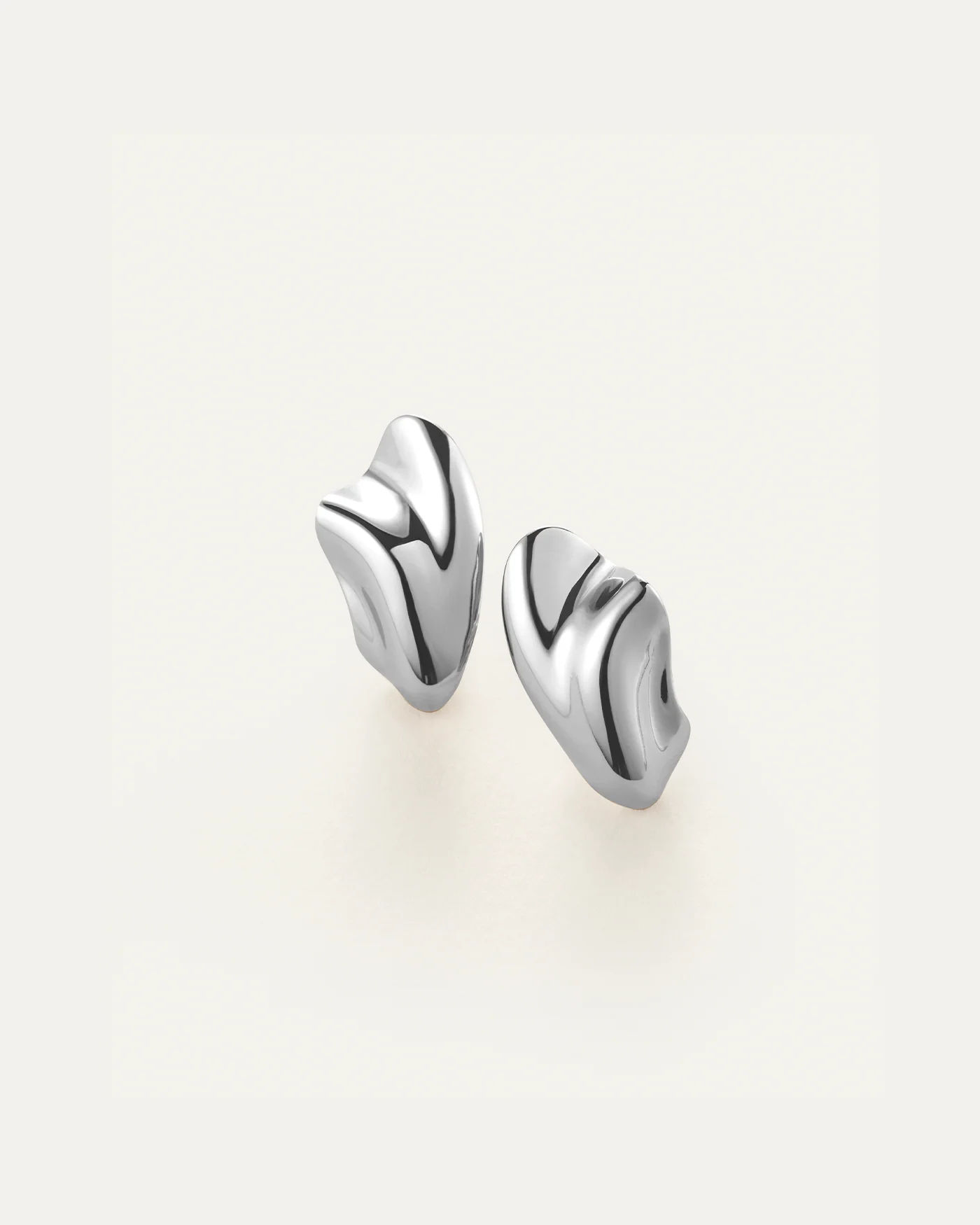 A sculptural mid-sized button earring.  Inspired by the organic form of a scalloped seashell, these silver earrings can be worn climbing up the ear or fanning down and out.  Finished in high-polish silver.