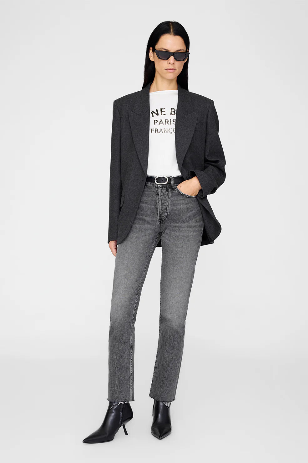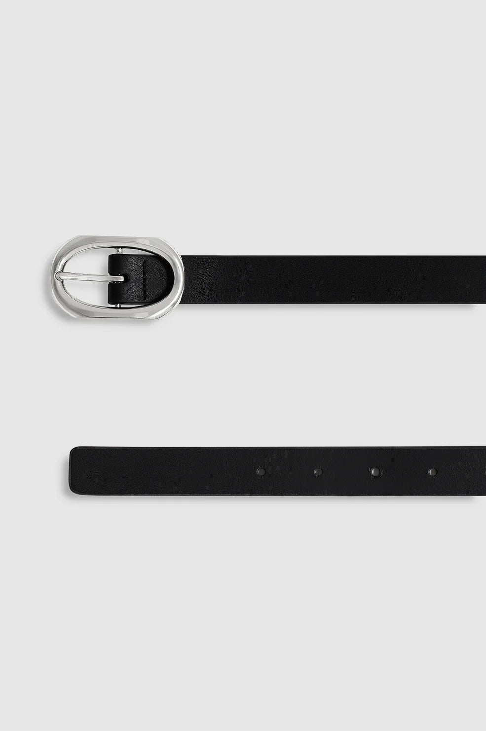 An everyday belt made from smooth 100% cow leather in black featuring a timeless, signature-link buckle with subtle ANINE BING branding.